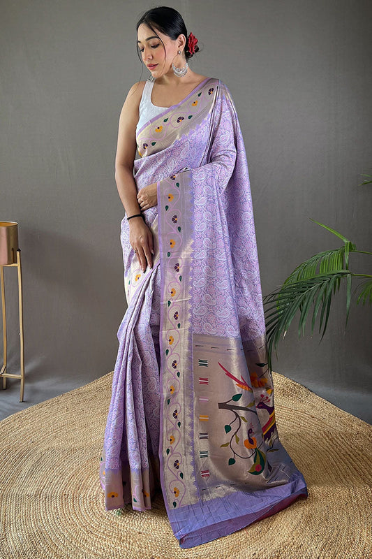Light Lavender Lucknowi Woven Paithani Silk Saree