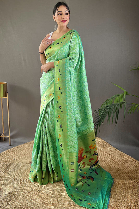 Mineral Green Paithani Silk Saree