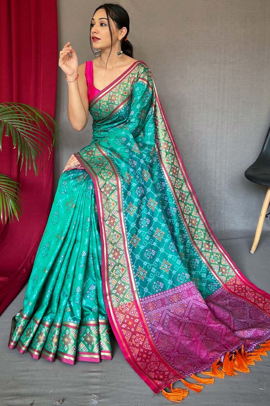 Beige and Green Kalamkari Printed Soft Silk Saree