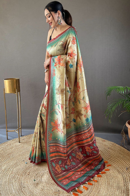Sand Beige Zari Woven Kanjivaram Silk Saree