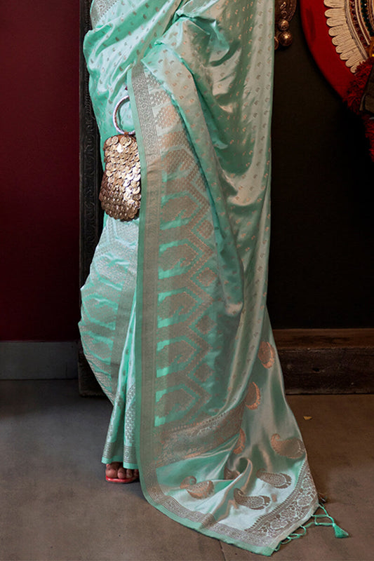 Mint Green Banarasi Satin Silk Saree