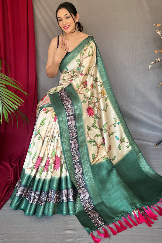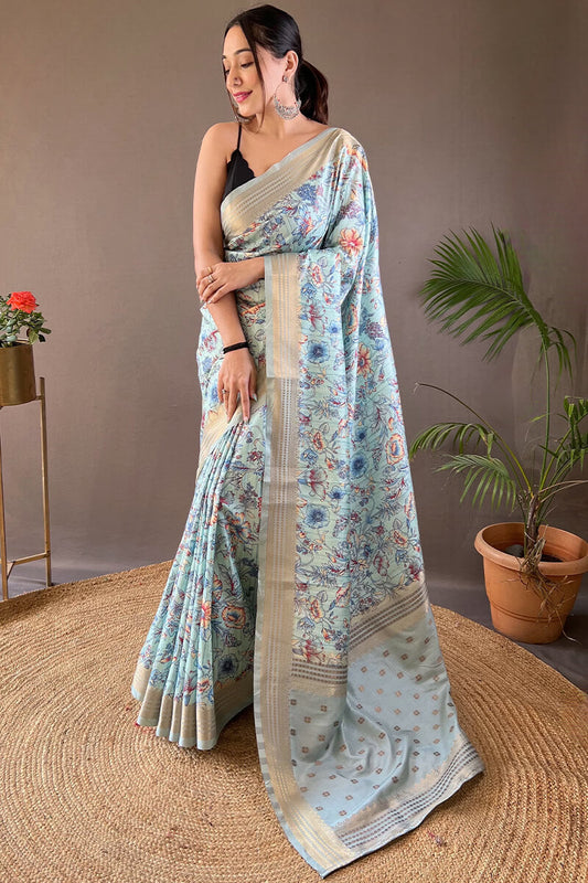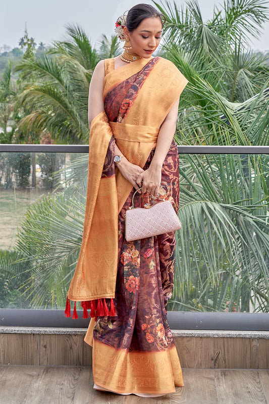 Harvest Beige Zari Woven Printed Soft Silk Saree