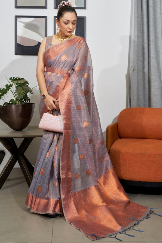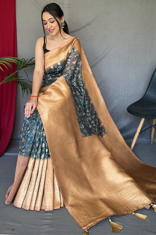Fuscous Grey Kalamkari Printed Soft Silk Saree