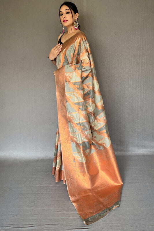 Vampire Grey Zari Woven Linen Cotton Silk Saree