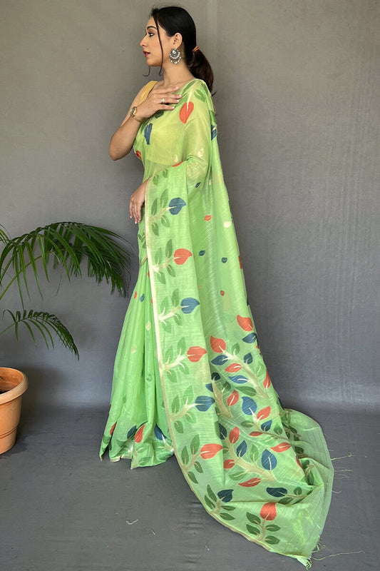 40% OFFAcid Green Linen Silk Saree