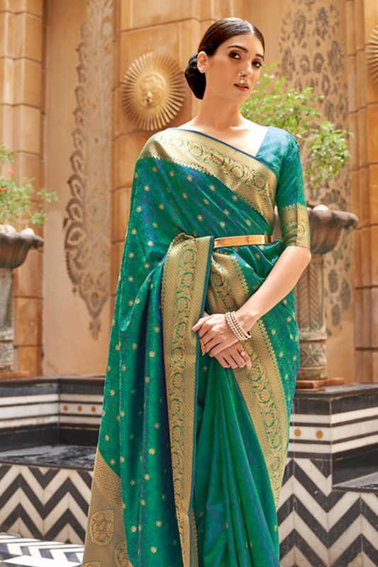 Peacock Green Pure Kanjivaram Soft Silk Saree with Zari Work