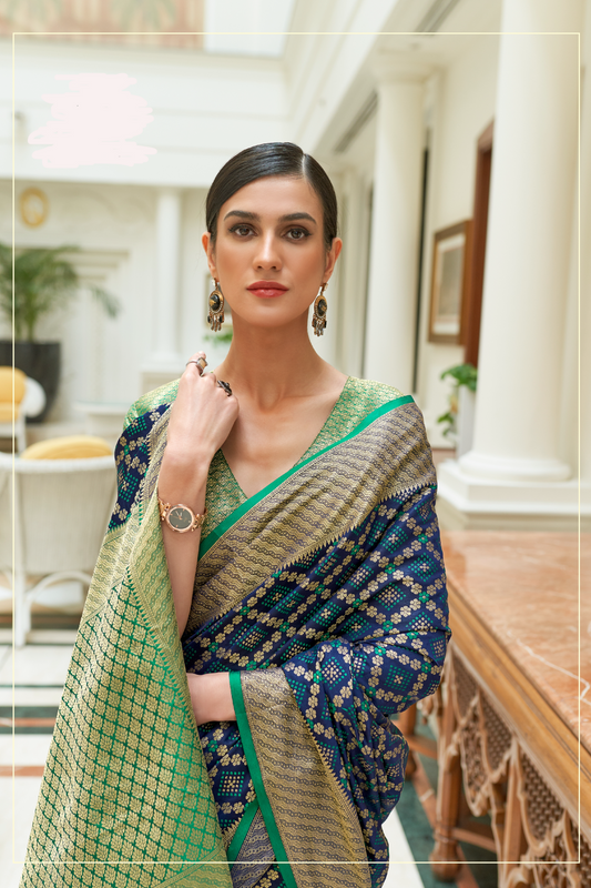Denim Blue Exquisite Patola Silk Saree with Handloom Weaving