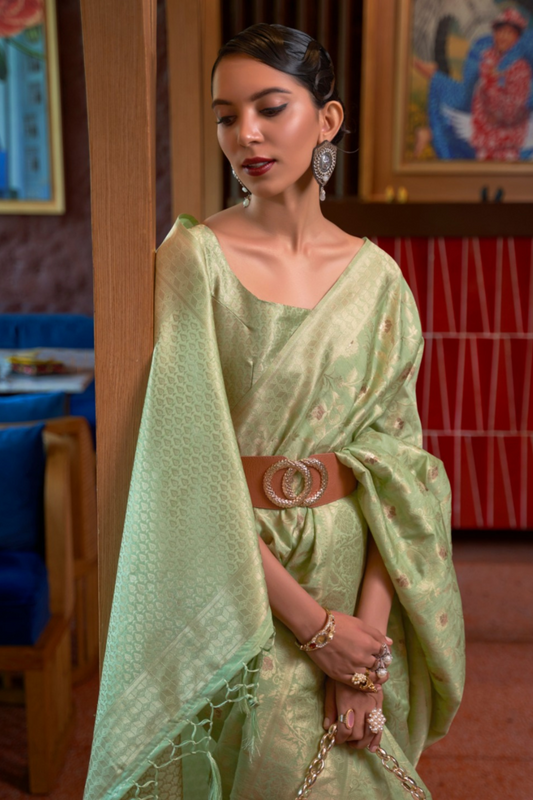 Olive Green Pure Banarasi Woven Silk Saree with Zari Work