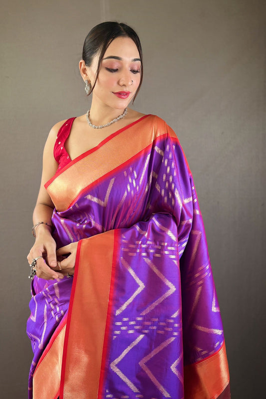 Fuchsia Zig Zag Zari Soft Silk Saree