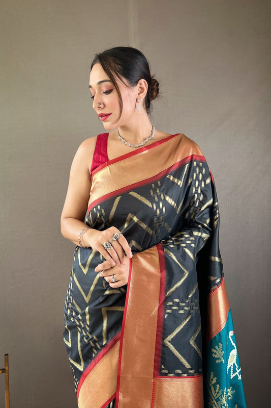 Steel Grey Zig Zag Zari Soft Silk Saree