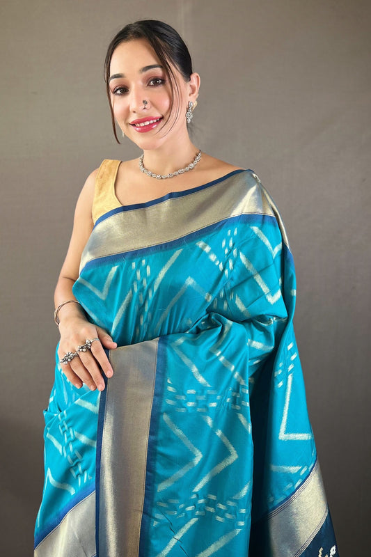 Aqua Green Paithani Zig Zag Zari Soft Silk Saree