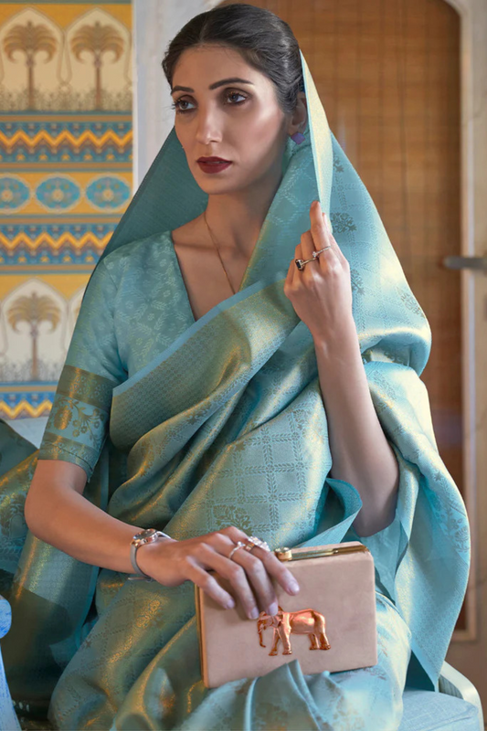 Sky Blue Banarasi Royal Wedding Edition Silk Saree with Zari Work