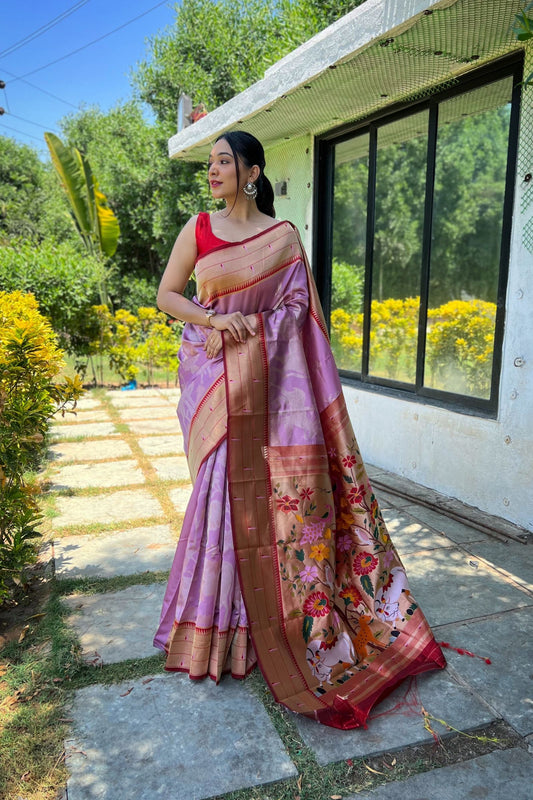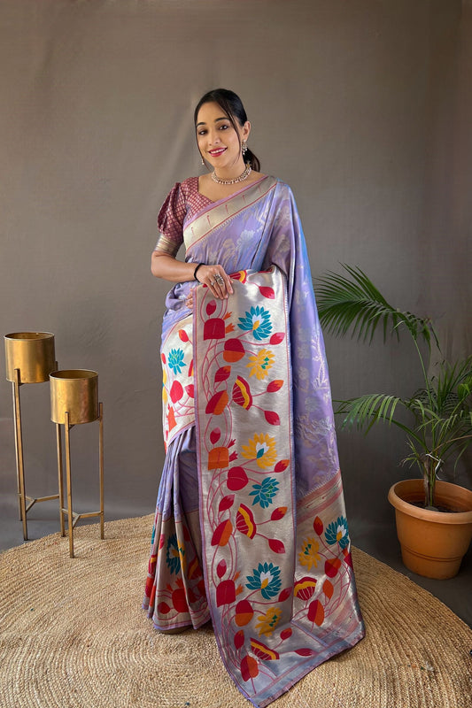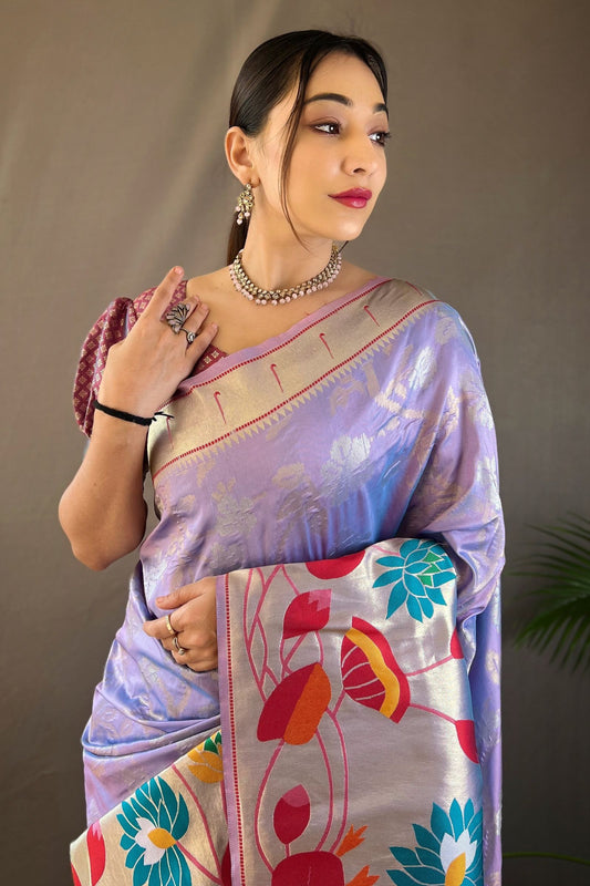 Lavender Zari Woven Soft Paithani Silk Saree with Traditional Pattern