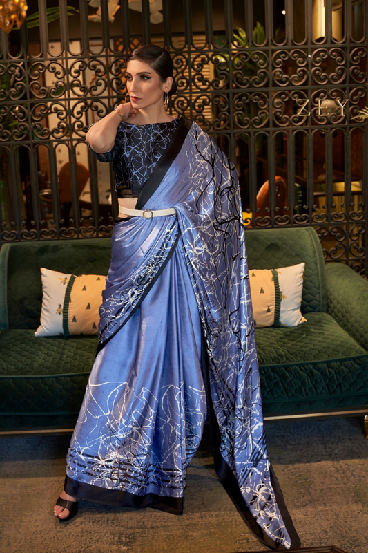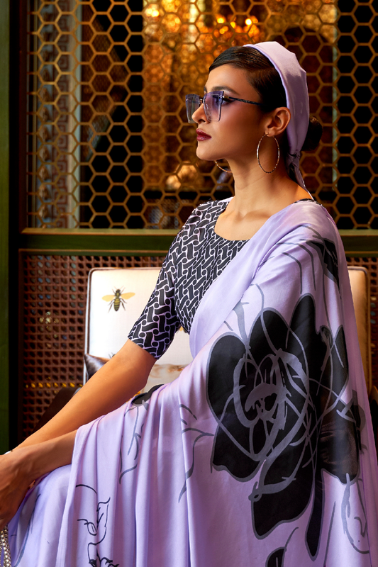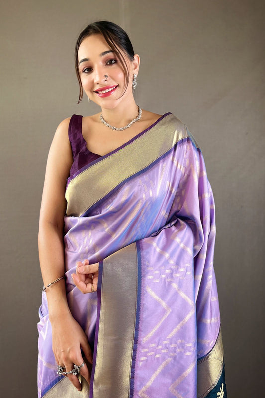 Trendy Lavender Kanjivaram Silk Saree with Satin Weaving Work