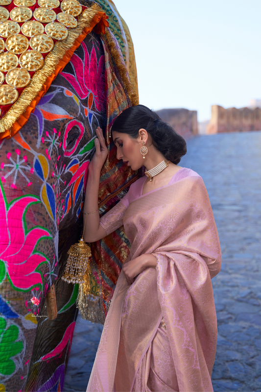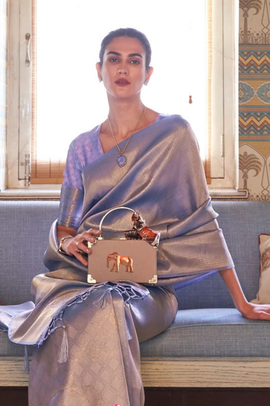 Lilac Lavender Banarasi Tissue Woven Silk Saree with Copper Zari