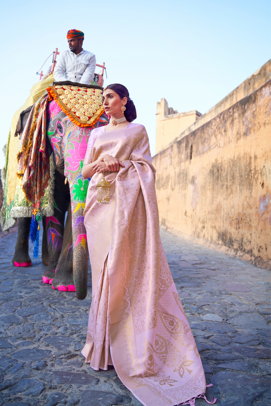 Light Lavender Lavish Banarasi Handloom Silk Saree with Tassels Pallu
