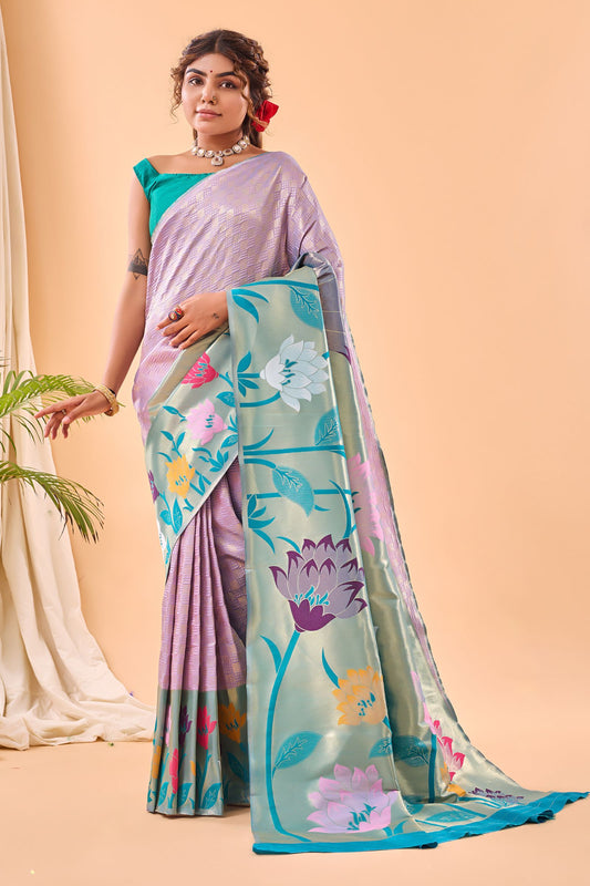 Lavender Soft Paithani Silk Saree with Traditional Patterns