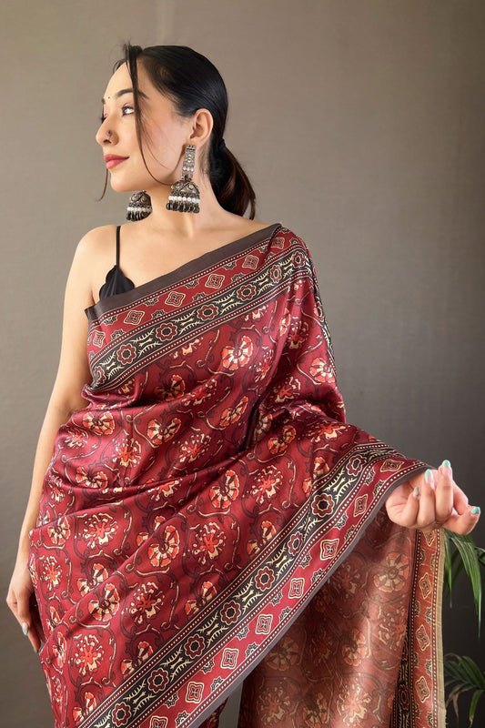 Magenta Cotton Pashmina Silk Saree with Floral Design