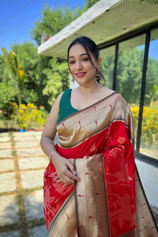 Find your perfect Paithani saree at Glam Rani! With stunning zari details and rich colors, these sarees are ideal for weddings and special occasions. Shop online today and add a touch of elegance to your wardrobe with our beautiful collection.
