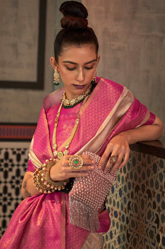 Fuchsia Pink Copper Zari Woven Kanjivaram Silk Saree