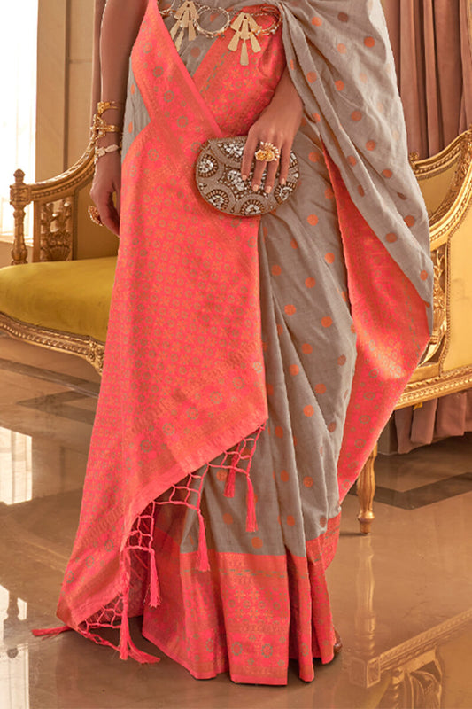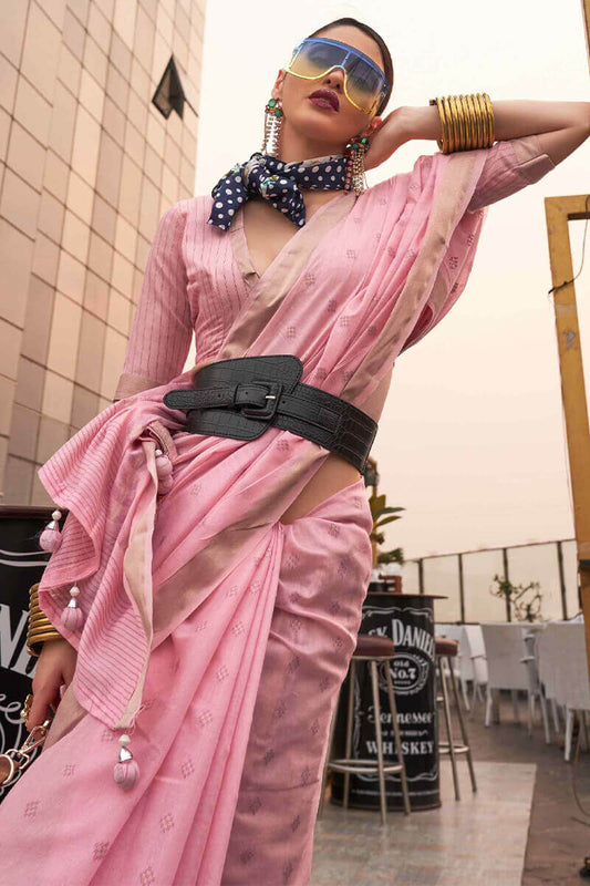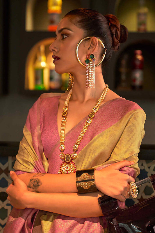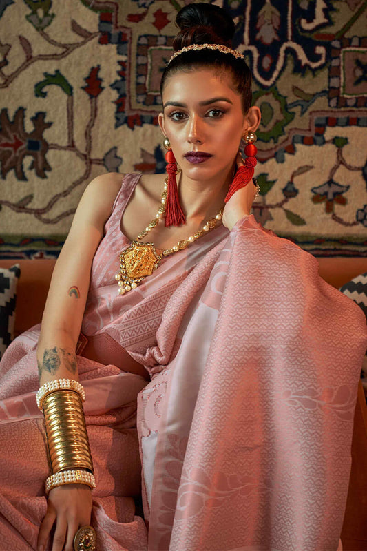 Oyster Pink Banarasi Woven Tissue Silk Saree