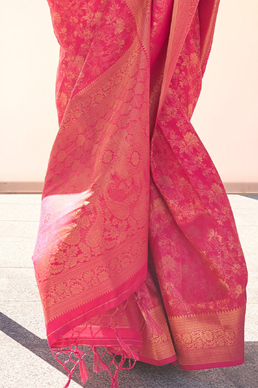 Strawberry Pink Zari Woven Kanjivaram Silk Saree
