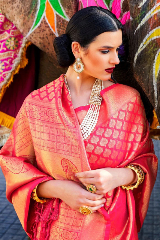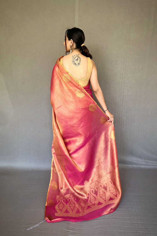 Onion Pink Jacquard Woven Tissue Silk Saree