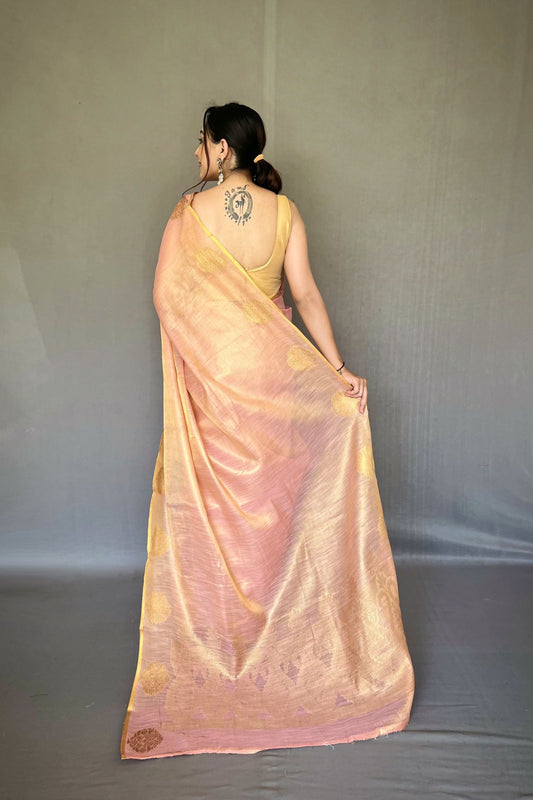 Pastel Pink Organza Shimmer Silk Saree with Copper Zari Weaving