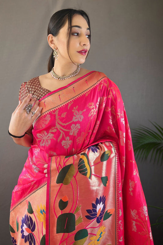 Hot Pink Soft Paithani Silk Saree with Traditional Patterns