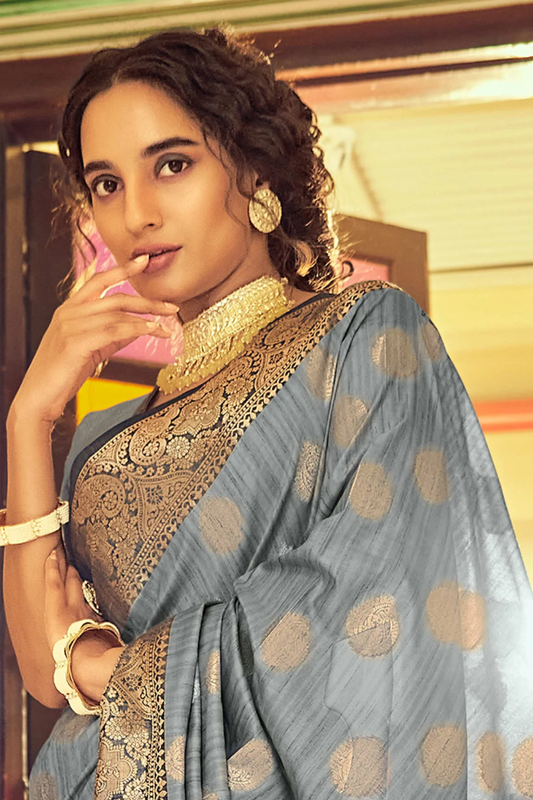 Lava Gray Posh Banarasi Katan Soft Silk Saree with Rich Zari Border