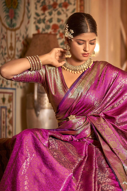 Mulberry Purple Pure Kanjivaram Silk with Bronze Zari Weaving