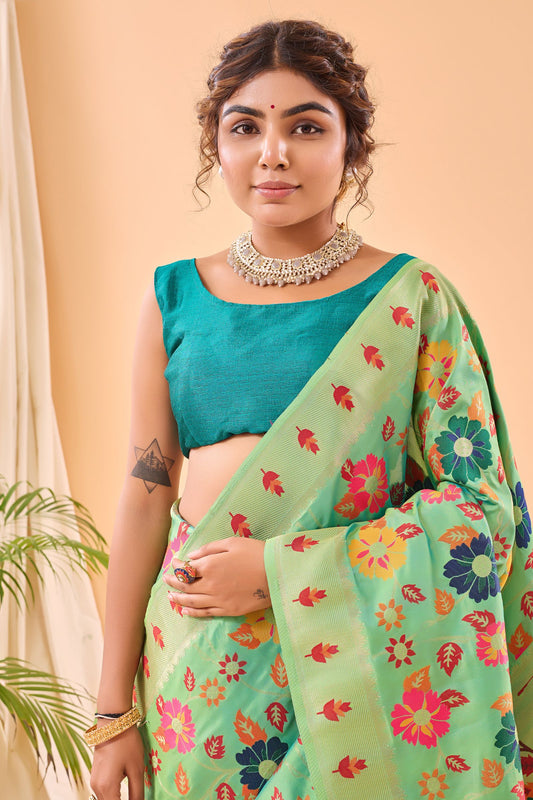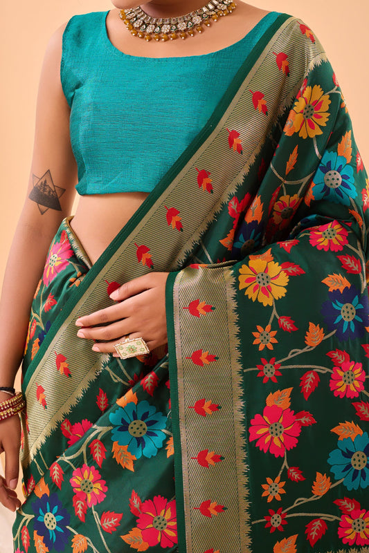 Dark Green Paithani Silk Saree with Royal Jaal Work