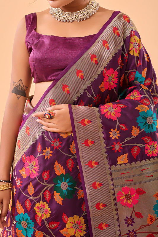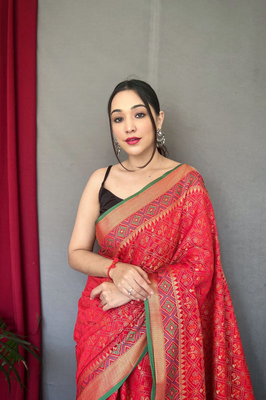 Fuchsia Meenakari Zari Weaving Patola Silk Saree