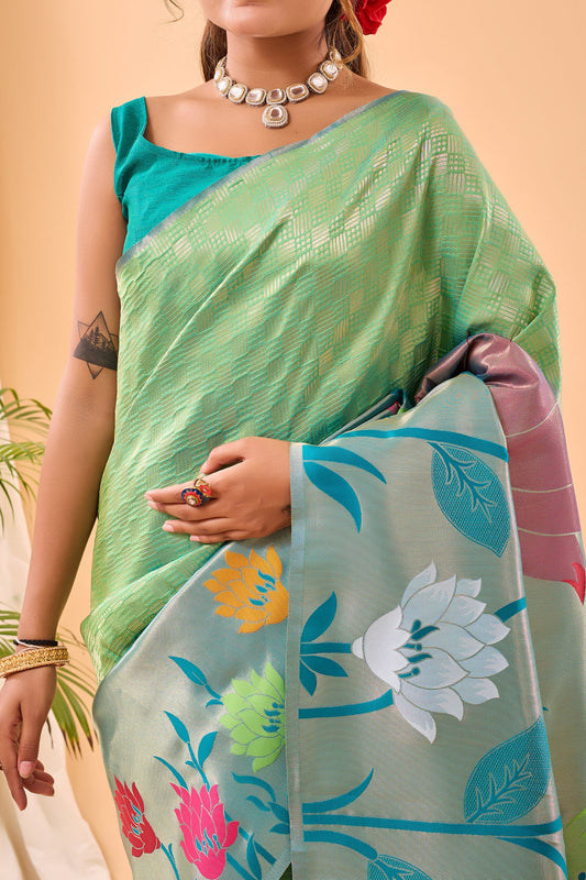 Pista Green Paithani Silk Saree with Big Beautiful Border