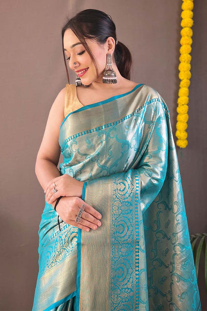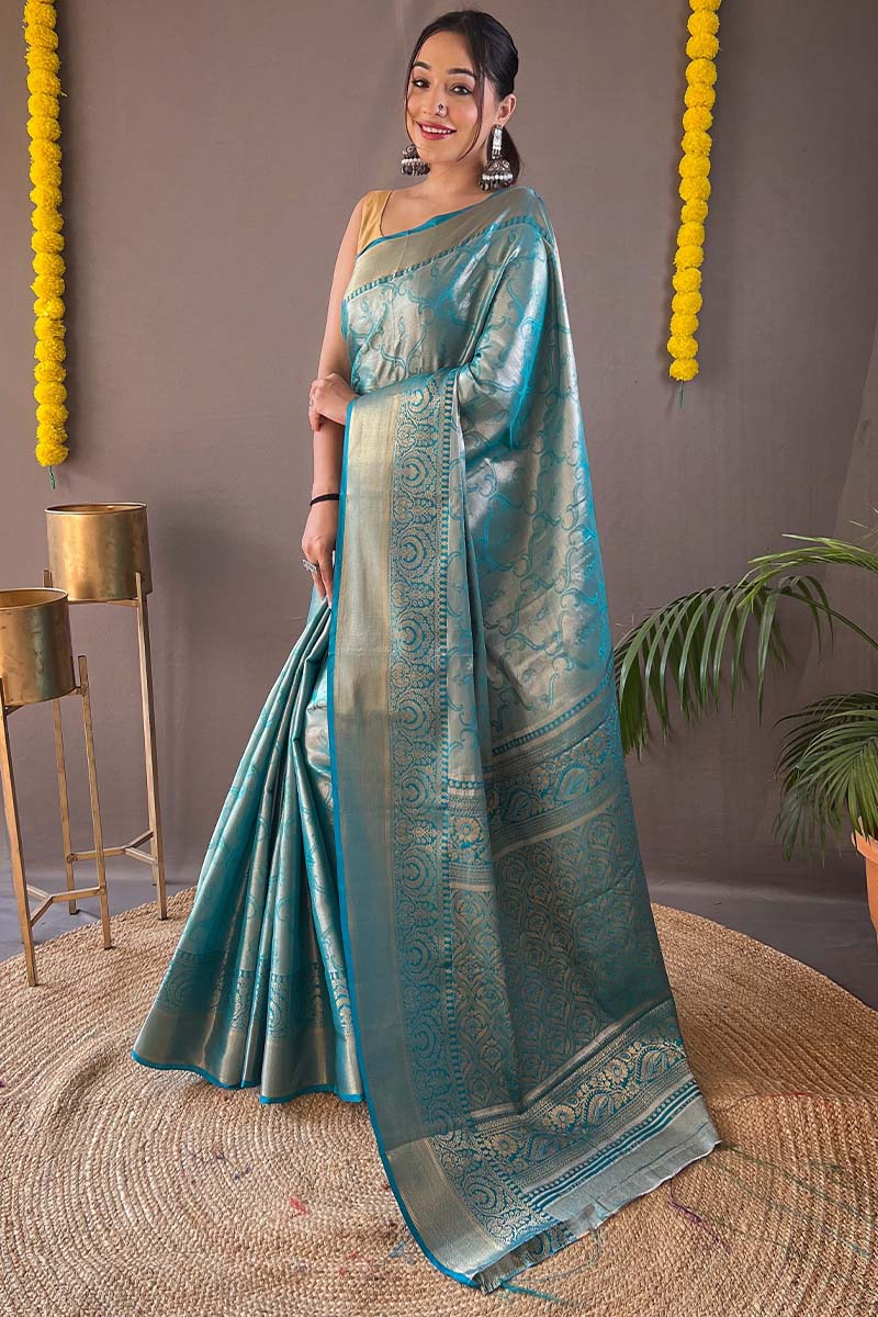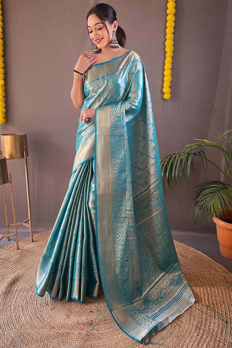 Aquamarine Blue Kanjivaram Silk Saree