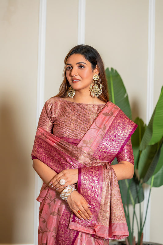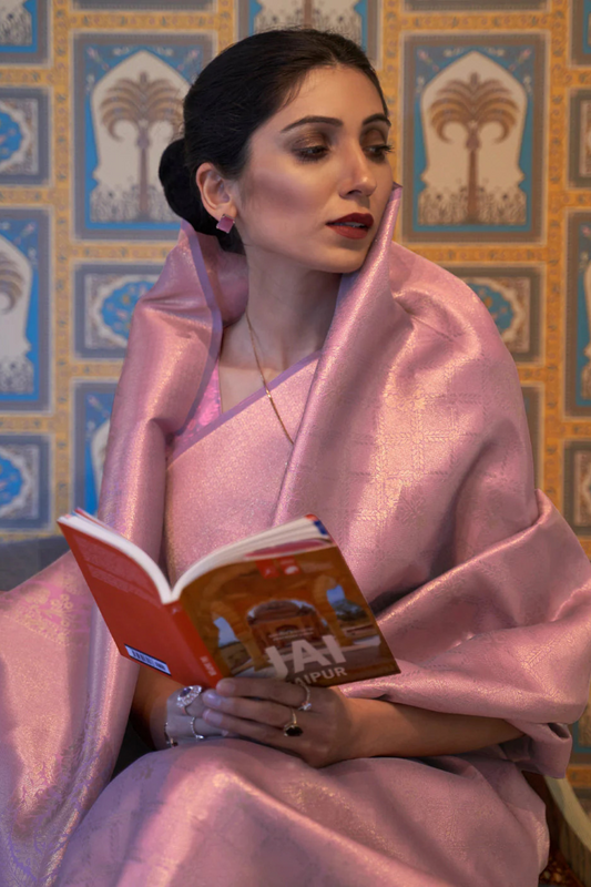 Pink Banarasi Pure Satin Silk with Graceful Zari Work Border