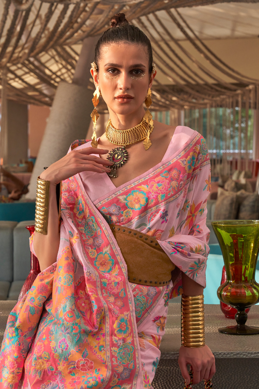 Coral Pink Kashmiri Cotton Silk Saree with Handloom Weaving