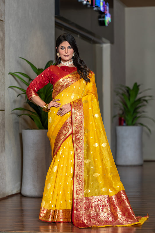 Marigold Yellow Banarasi Woven Tissue Silk Saree