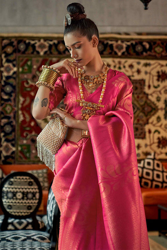 Fuchsia Pink Copper Zari Woven Kanjivaram Silk Saree