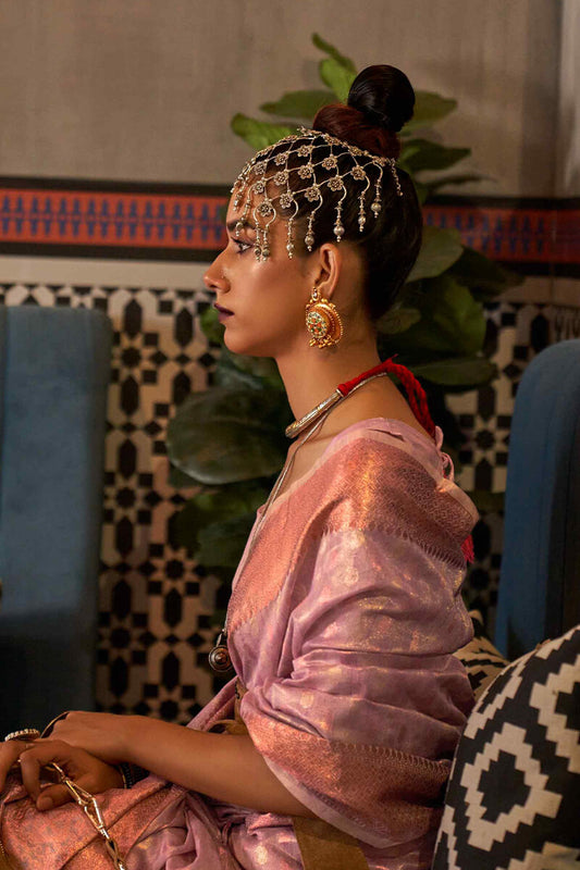 Lilac Lavender Banarasi Tissue Woven Silk Saree with Copper Zari