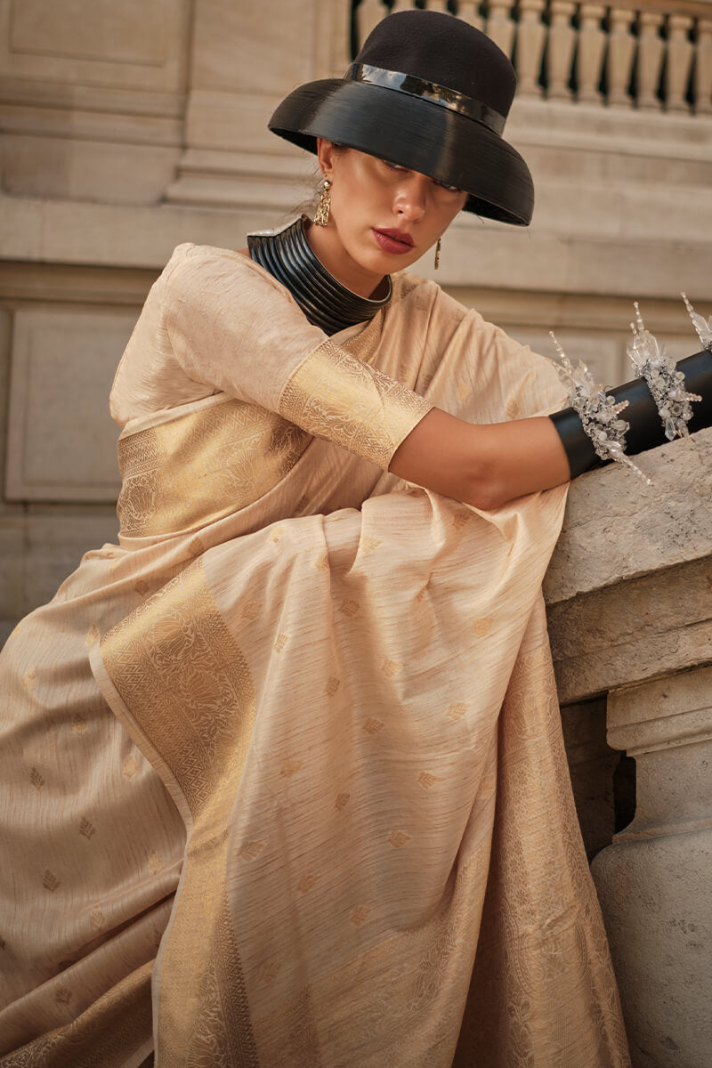 Brandy Beige Zari Woven Banarasi Silk Saree