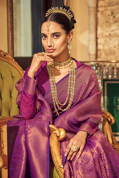 Byzantium Purple Woven Kanjivaram Silk Saree