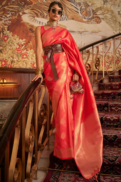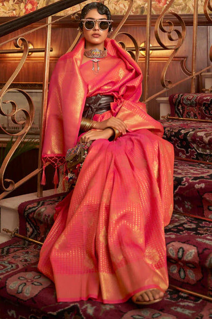 Carmine Pink Zari Woven Kanjivaram Silk Saree