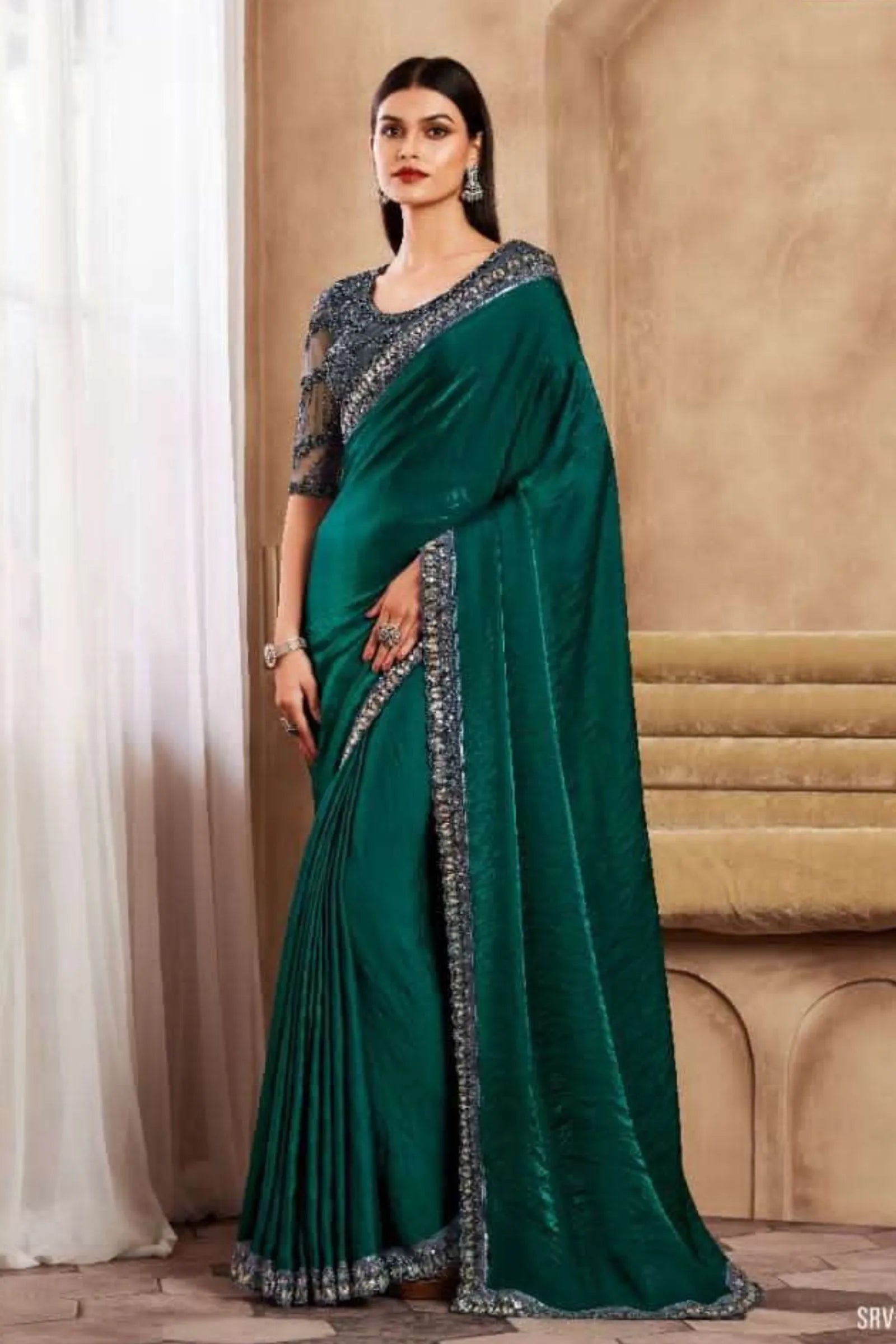 The saree is absolutely stunning! The emerald green color is so vibrant. 🌟 Perfect for weddings! 💚