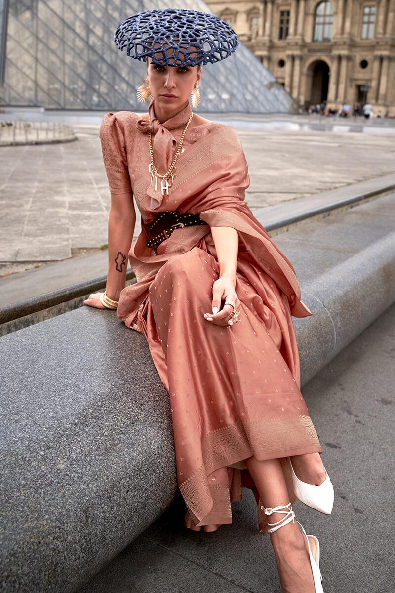 Deep Peach Zari Woven Banarasi Satin Silk Saree