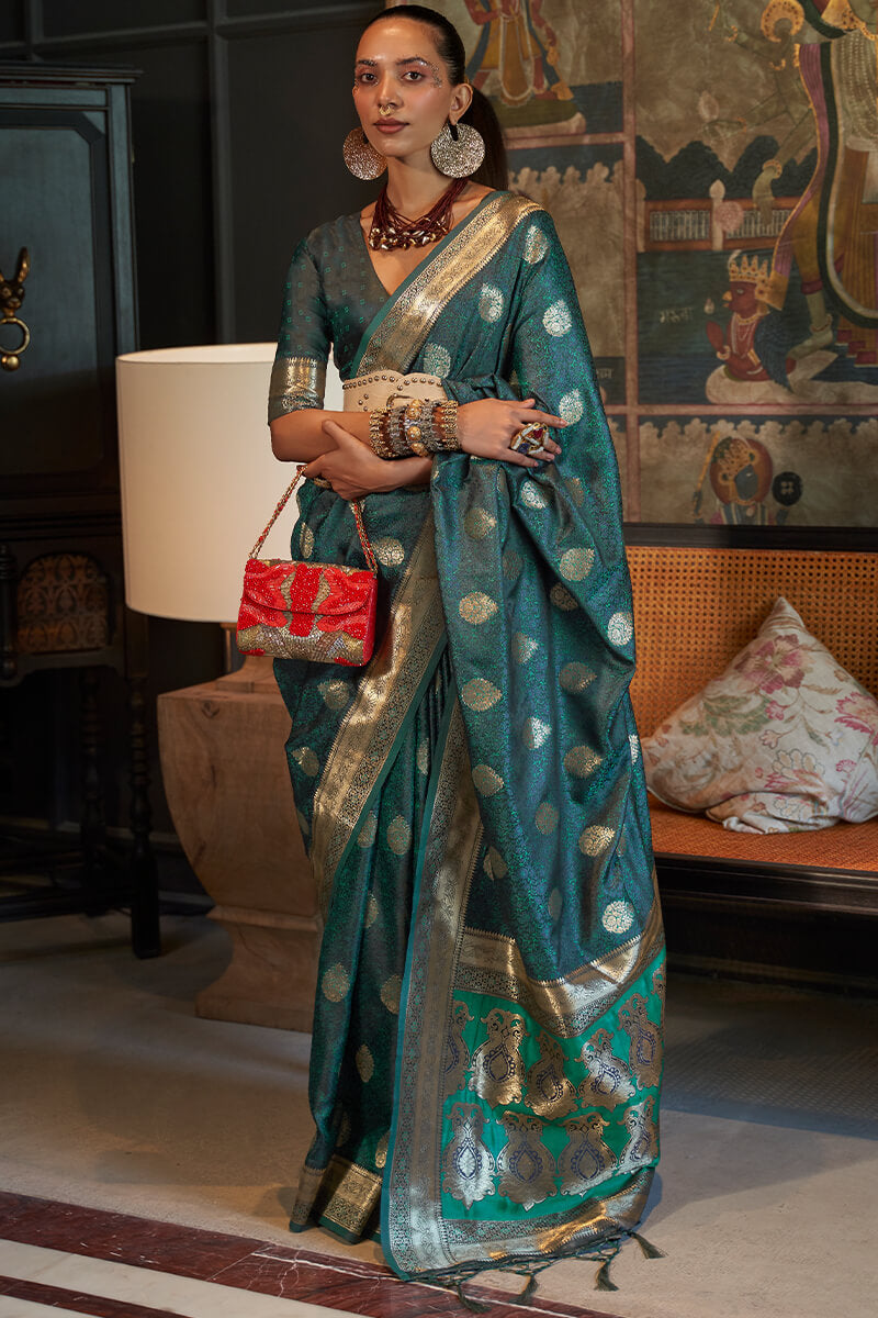 Dianne Blue Zari Woven Satin Silk Saree
