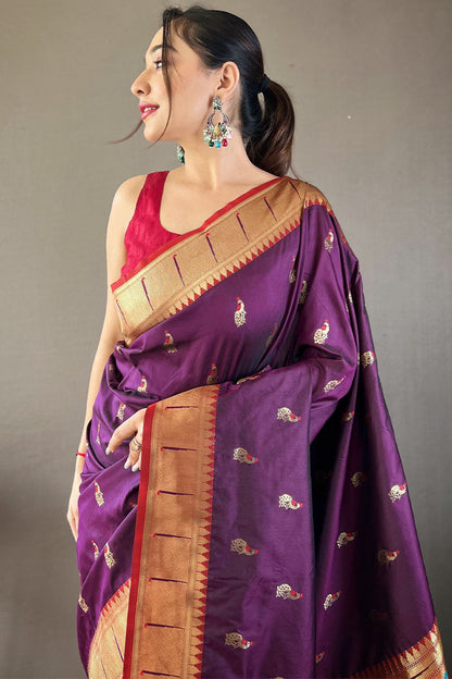 Dirty Purple Zari Woven Paithani Silk Saree