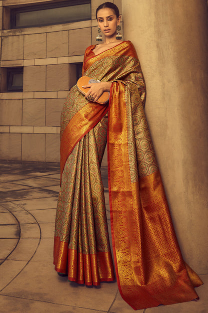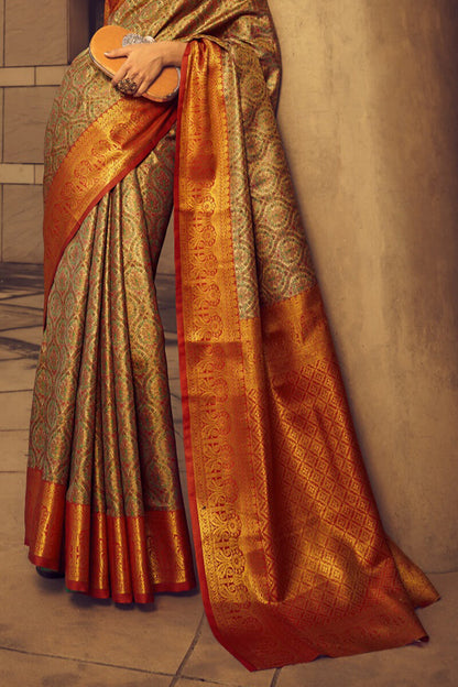Golden Yellow Banarasi Tissue Woven Silk Saree with Copper Zari