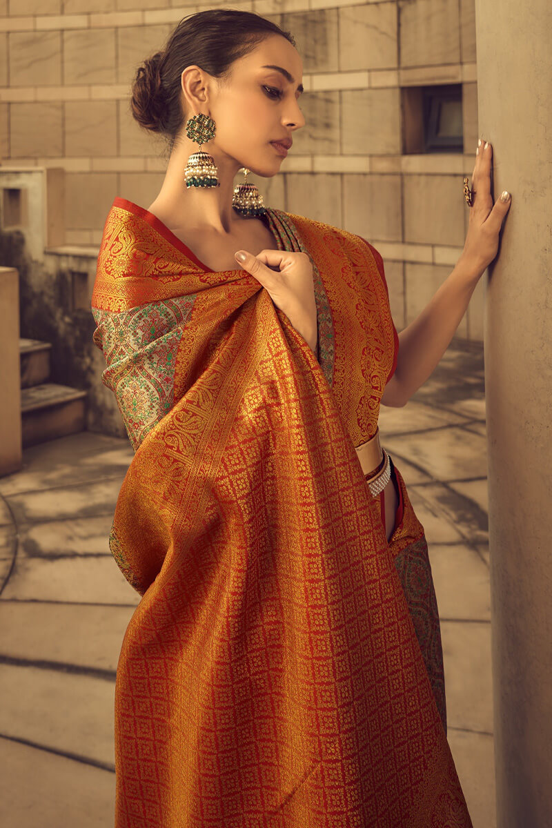 Marigold Yellow Banarasi Woven Tissue Silk Saree