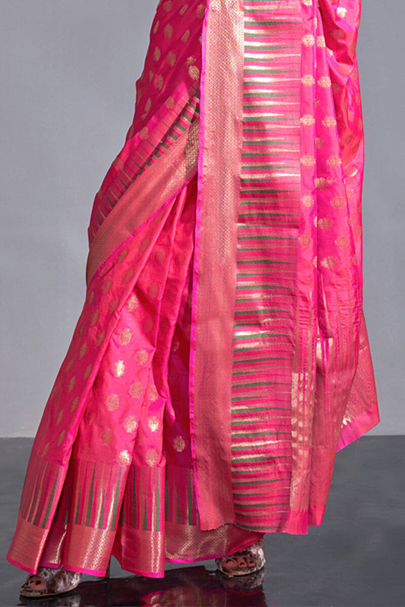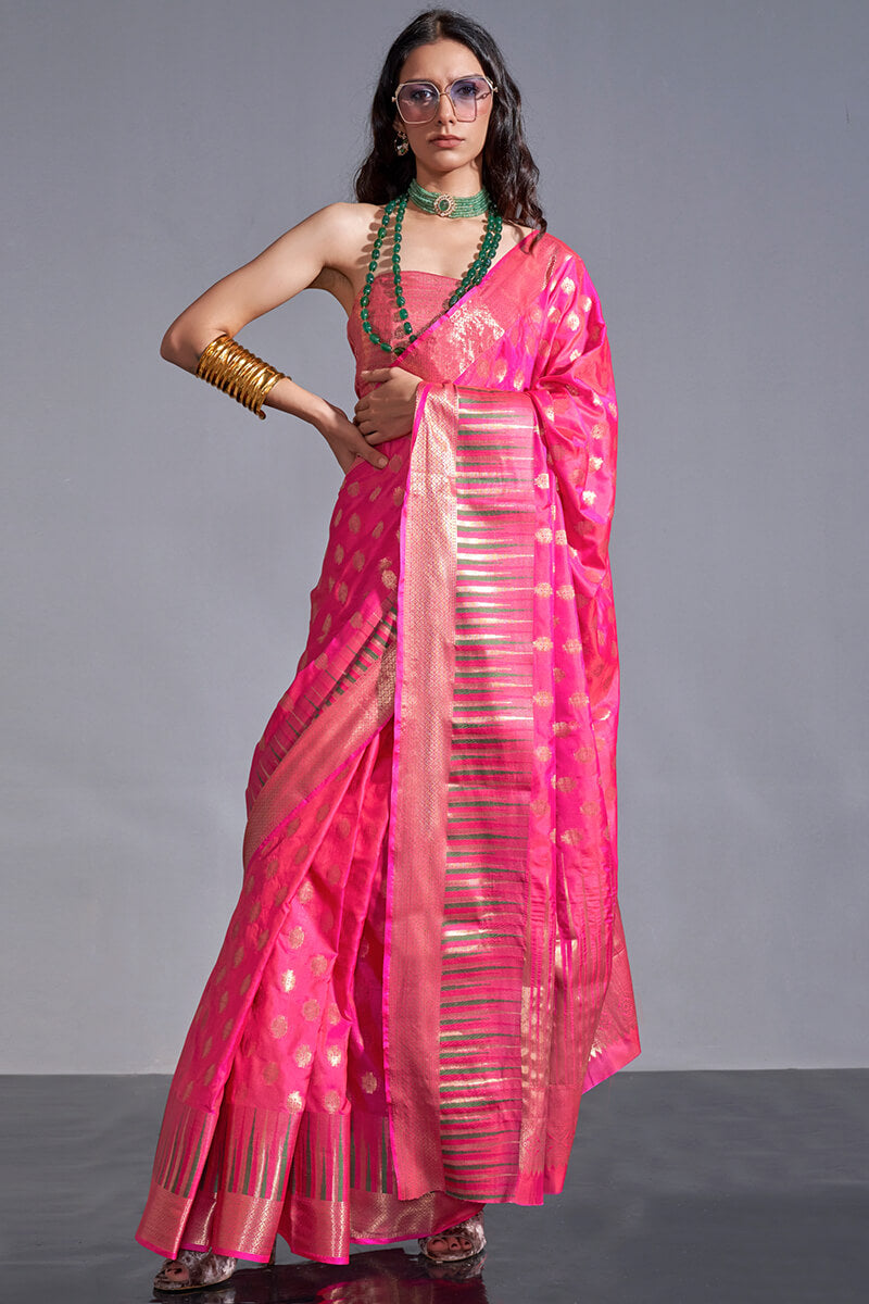 French Rose Pink Zari Woven Banarasi Silk Saree